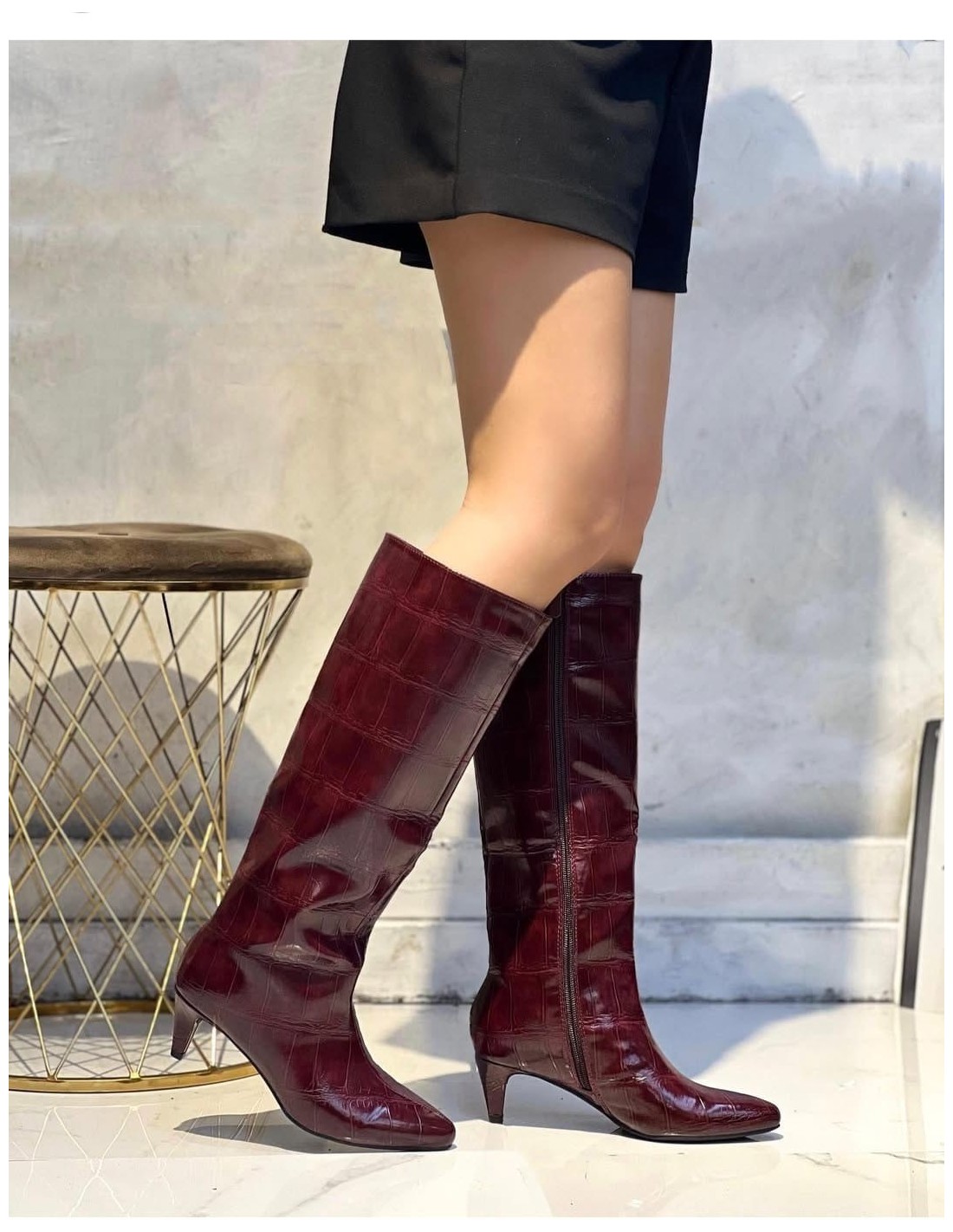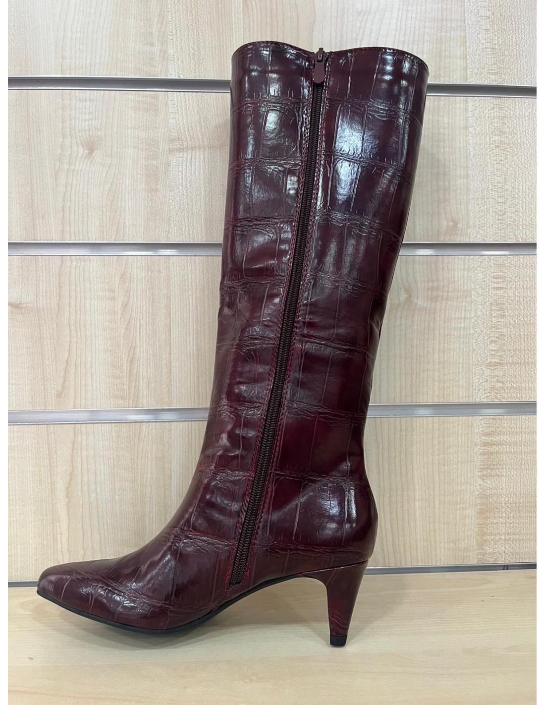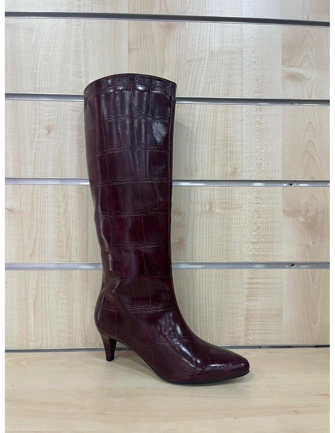 Stivale martellato wine~red con zip laterale , tacco mini comodissimo